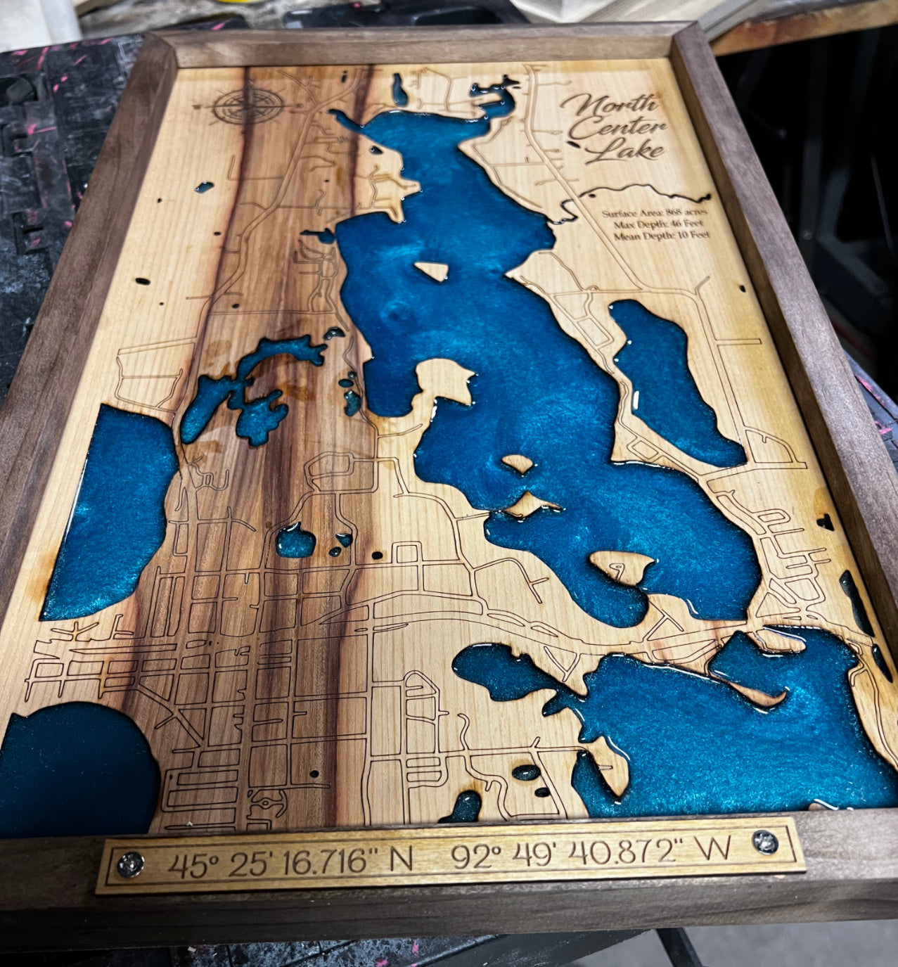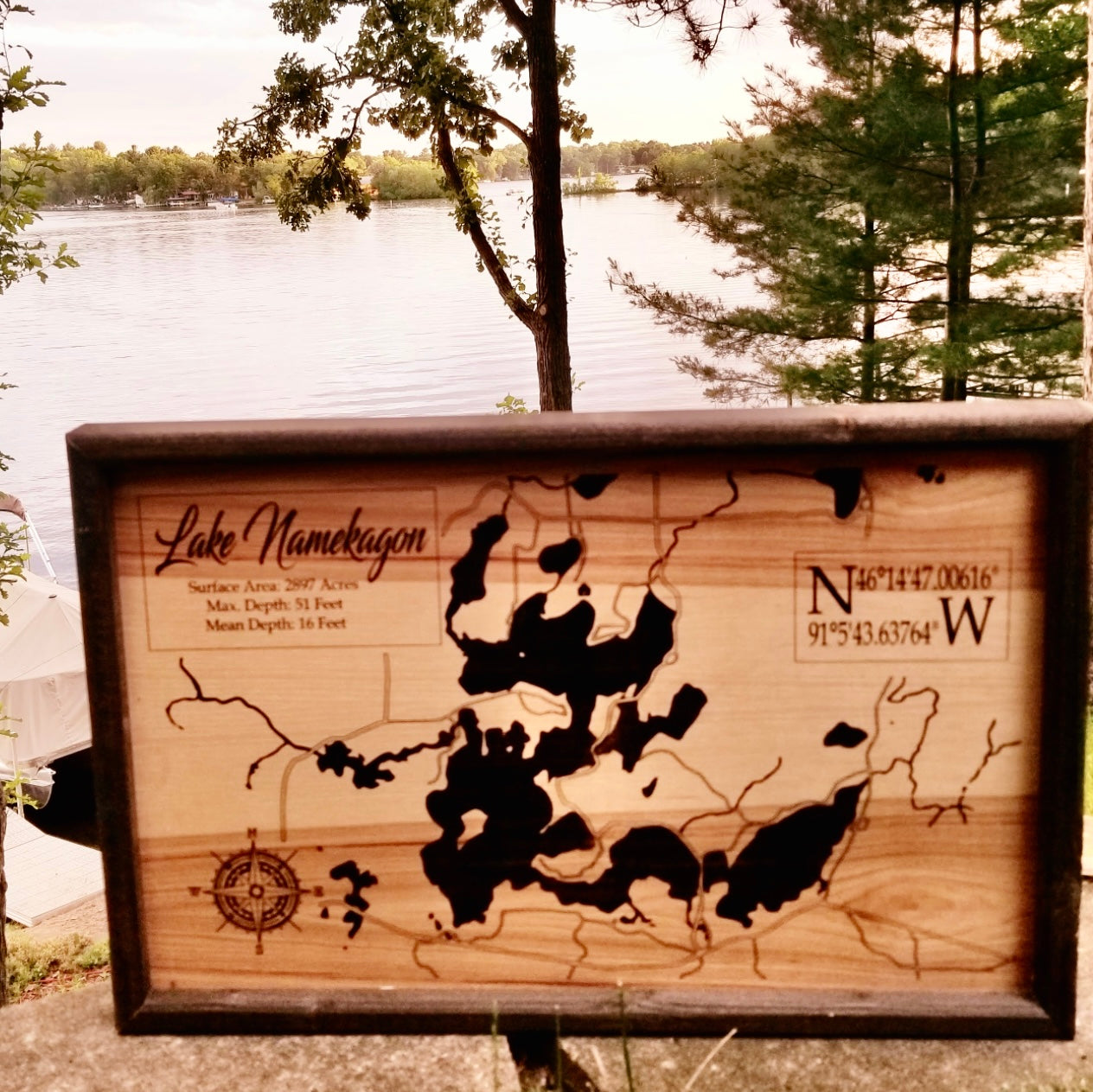 Laser Engraved Lake Map |
